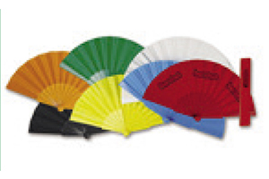 Abanico de varillas de plástico y tela en poliéster.