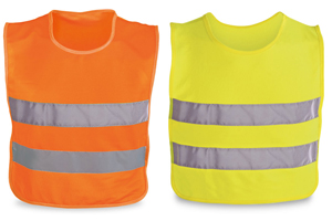 Chaleco reflectante en colore naranja y amarillo.