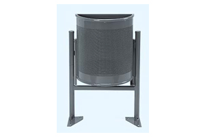 Papelera semicircular en chapa pintada con oxirón o en acero inoxidable.